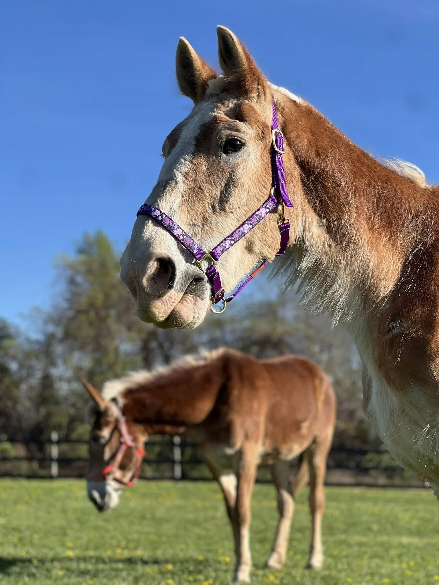 Notes: Polly came home with a note about her life prior to us. Her prior owners let us know that she had 7 colts and was as a work horse in the orchard.